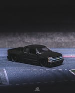 It sits on black wheels paired with lettered performance tires, adding the perfect street-truck attitude and finishing the blackout theme. Headlight and taillight decals were carefully applied to sharpen the details and bring realistic depth to both ends of the build.