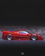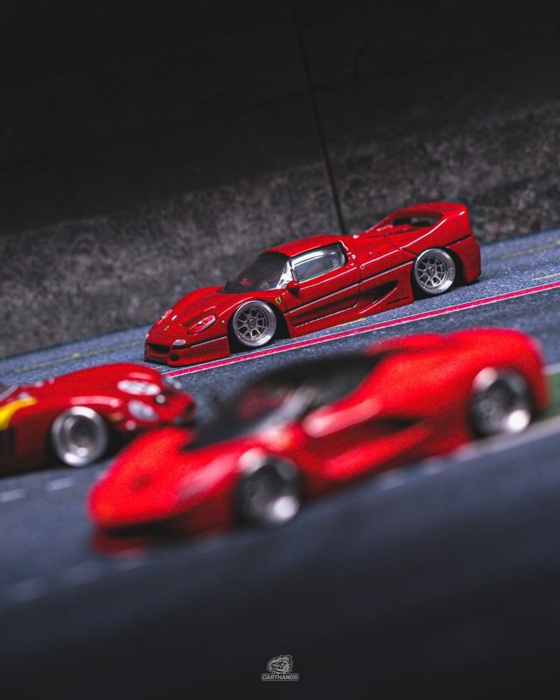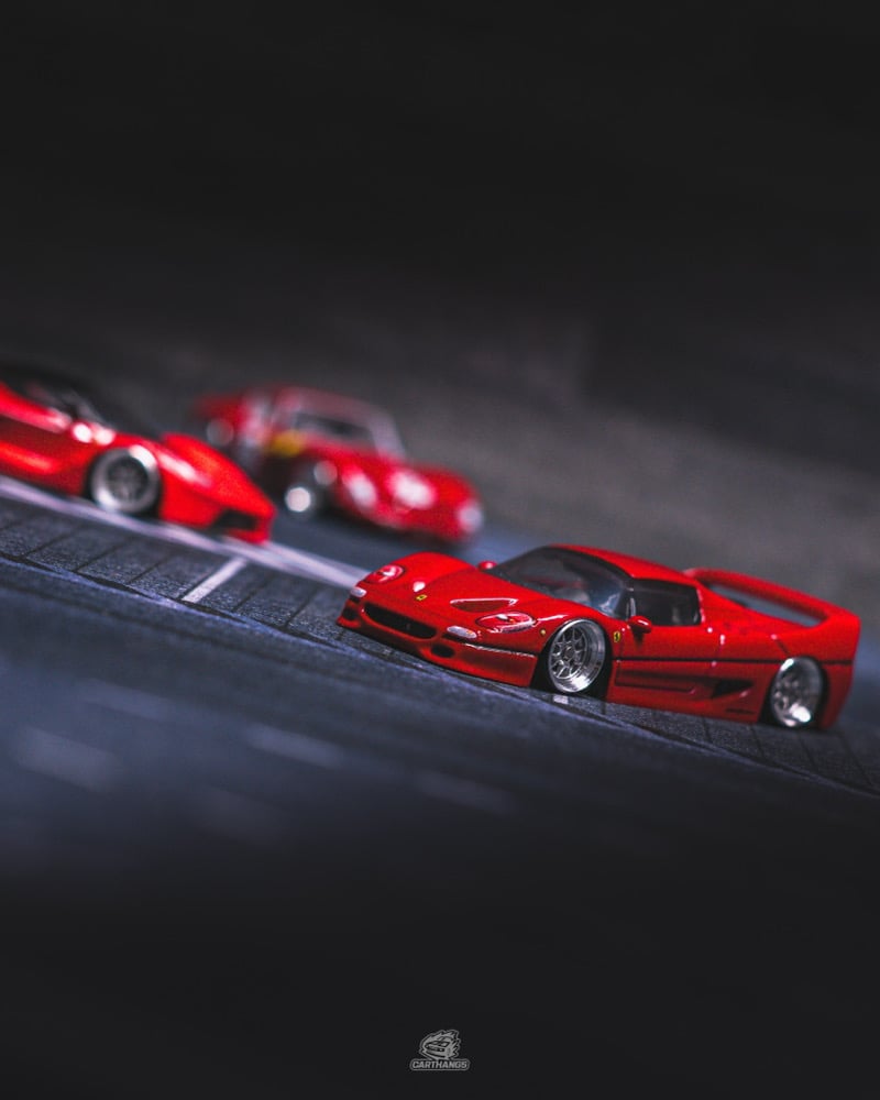 • Ferrari F50 – sleek, aggressive stance, detailed interior, and a flush fitment that gives it that track-ready look.